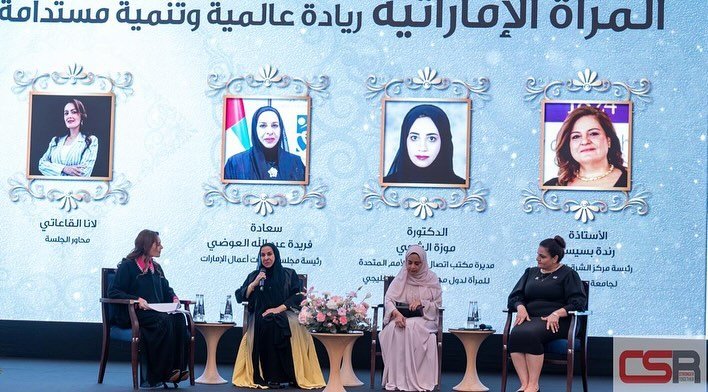 في كلمة لها ، القاها نيابة عنها الشيخ طحنون بن خليفة بن محمد ال نهيان : إن إنجازات المرأة التي تحققت خلال العقود الماضية ترتبط بصورة وثيقة برؤية المغفور له الشيخ زايد بن سلطان آل نهيان طيب الله ثراه و توجيهاته في دعم المرأة و تعزيز مسيرتها، وأن ما تحققه المرأة الإماراتية من إنجازات جاء أيضاً بدعم من رائدة النهضة النسائية سمو الشيخة فاطمة بنت مبارك “أم الإمارات” رئيسة الاتحاد النسائي العام رئيسة المجلس الأعلى للأمومة والطفولة الرئيسة الأعلى لمؤسسة التنمية الأسرية وما تمثله من أنموذج لإبنة الإمارات في تحقيق الإستقرار المجتمعي و التوازن بين مسيرتها في التنمية الإقتصادية و تنشئة أجيال المستقبل .